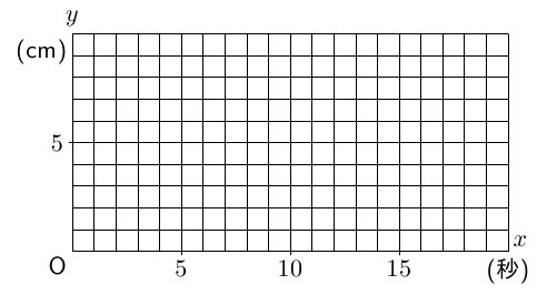 - 水を3秒間入れたときの水面の高さは$\fbox{ア}$cm