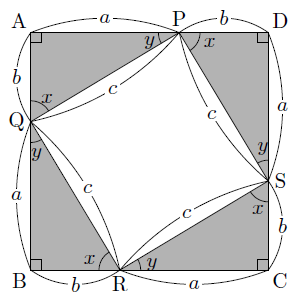 となるので,四角形PQRSは1辺の長さcの正方形になります。