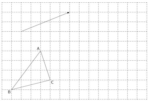 次の△ABCを矢印の方向に,その長さだけ平行移動した図形をかきなさい。