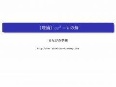 2次方程式の解の公式の導出、解の公式を利用した2次方程式の解き方について学習します。