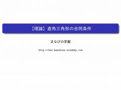 「直角三角形の合同条件」の確認問題を行います。「解答を確認」ボタンを押すと解説動画講義を閲覧することができます。