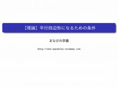 「平行四辺形になるための条件」の確認問題を行います。「解答を確認」ボタンを押すと解説動画講義を閲覧することができます。